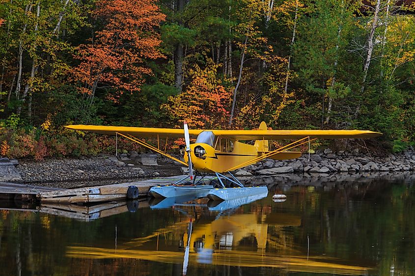 メイン州グリーンビルのムースヘッド湖の水上飛行機の拡大図。