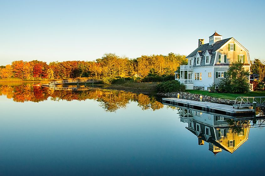 大西洋とケネバンク川に面したケネバンクポートは、旅行者が海岸の景色とともに鮮やかな紅葉を楽しめる魅力的な町です。たとえば、町のトップアトラクションの 1 つであるオーシャン アベニューは、10 月中旬から下旬にかけて、旅行者を、険しい海岸と町の紅葉の景色を眺めながらリラックスしたドライブや散歩に誘います。一方、カボット コーブのコテージはこの風光明媚なルートからアクセスでき、居心地の良い宿泊施設と格別な秋の景色を求めてぜひ訪れたい場所です。この施設では、魅惑的な色が随所にあり、ほとんどのコテージには椅子のある素敵なパティオがあり、絵本を読んだり何かを飲みながらくつろいで景色に浸ることができ、本当にセンセーショナルな体験ができます。