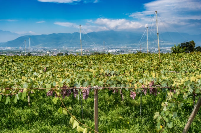 東京から西に車で数時間の山梨県は、おいしい果物で有名で、日本のワイン産地としても知られており、甲府盆地は日本のワイン造りの発祥の地です。この地域は、白ワインの原料となる在来品種の甲州ブドウと、赤ワインを生産するもう一つの地元ブドウであるマスカット ベーリー A で有名です。日本ワインは日本のウイスキーほど人気が高まっていませんが、山梨はワイン造りの長い歴史を誇り、この美しい地域には驚くほど優れたブドウ畑がいくつかあります。