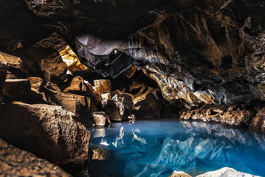 北アイスランド、マイヴァトン近くのGrjotagja Lava洞窟。