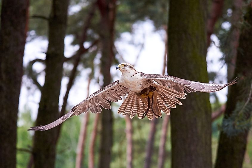 飛行中のセイカー ハヤブサ (Falco cherrug)、鷹狩り