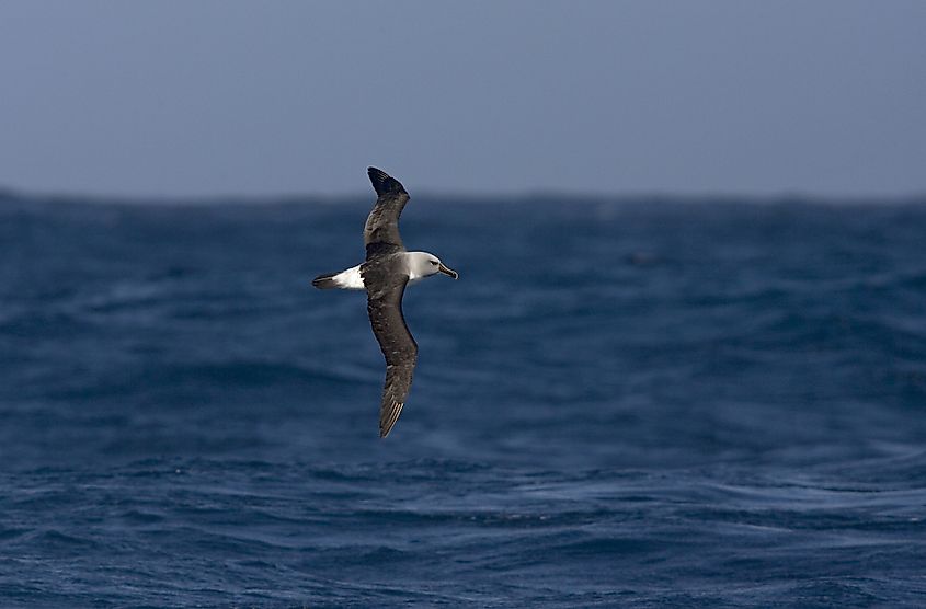 大西洋南部を飛行するハイイロアホウドリ。