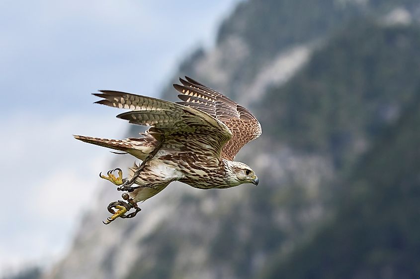 シロハヤブサ (Falcorusticolus) は世界最大のハヤブサの種です。北極の海岸、ツンドラ地域、北アメリカ北部とユーロシベリア地域の島々に生息しています。その驚くべき狩猟敏捷性により、飛行中にライチョウや水鳥などの獲物を素早く追跡し、潜水速度は時速 209 km (時速 130 マイル) に達します。シロハヤブサは、水平方向の速度でも世界で 3 番目に速い鳥としてランクされており、最大水平速度は 145 km/h (90 マイル) です。羽の色は、純白から濃い茶色や黒色まで幅広く変化しており、北極の多様な生息地に溶け込むように適応しています。シロハヤブサは、その狩猟能力と力強い体格から歴史的に鷹狩りで珍重されており、長い間威信の象徴とみなされてきました。