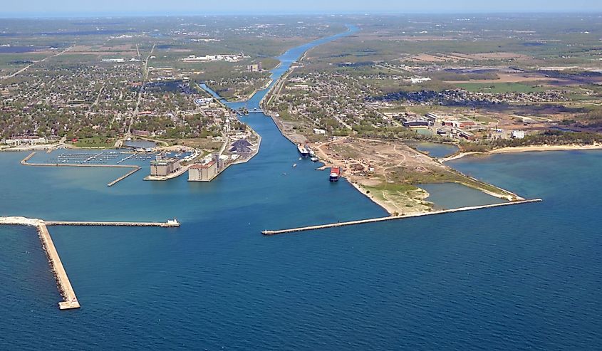 ポートコルボーンのウェランド運河、エリー湖入口の眺め。画像クレジット: Shutterstock 経由の SF 写真。