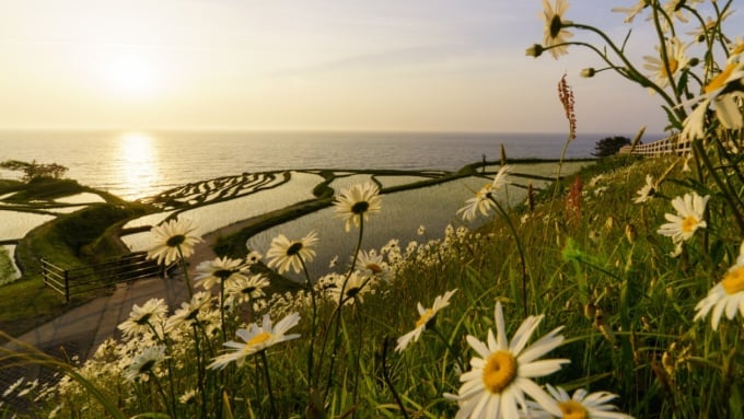 Shirokome Senmaidaはいつでも素晴らしい景色を眺めることができますが、本当に夕日を楽しみたいなら、最高の時期は米の植栽の季節です。 4月の終わり頃、水は1,000を超えるテラスから引き出され、雲と太陽を反映する鏡のような表面に変えます。日没時には、空が赤とオレンジの色合いで塗られ、太陽がゆっくりと沈むと、各テラスは空の色の変化する色に覆われます。印象的なコントラストを提供するテラスの端は、シーン全体が傑作に似ています。この忘れられない見方を体験するために、日没時に必ず訪問してください。
