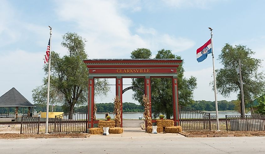 ミシシッピ川の端に通じるクラークスビルの赤と緑のアーチ構造。 ShutterStock経由の画像クレジット写真Brianscantlebury