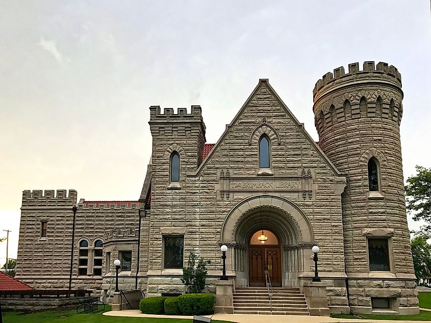 米国初の税金支援の郡図書館は、1890 年にオハイオ州ヴァン ワートの住民のために定期購読図書館を設立した 12 人の女性グループであるヴァン ワート女性図書館協会の発案です。市税のおかげで、1896 年までに図書館には 1,400 冊の蔵書があり、無料の市立図書館になりました。著名な慈善家ジョン・サンフォード・ブランバックとその家族の支援により、すべての住民が無料で図書館を利用できるように必要な経済的支援を提供し、歴史ある図書館は 1901 年 1 月 1 日に開館しました。ゴシック様式とロマネスク様式の建築の組み合わせにより、図書館は図書館というよりも城に似ており、それがその魅力的な背景と魅力をさらに高めています。現在、ブルムバック図書館は、オハイオ州最大の地方図書館の 1 つとして際立っており、常に米国で最高の図書館にランクされています。図書館で時間を過ごした後は、ダウンタウンを散策し、ブリュード エクスプレッションズでコーヒーを飲みに立ち寄ってください。そこでは、新鮮なエスプレッソ、スチームミルク、ピーナッツ バター、チョコレートで作られたバックアイなどの特製ラテを味わうことができます。