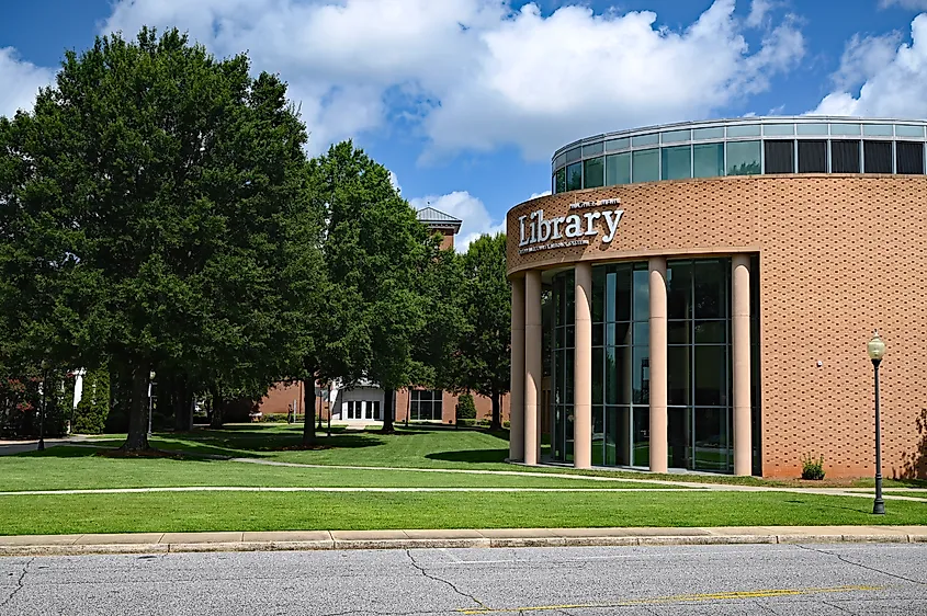サウスカロライナ州グリーンビルのヘリテージ グリーンにあるヒューズ メイン図書館。 P. ヒューズ著、CC BY-SA 4.0、ウィキメディア・コモンズ