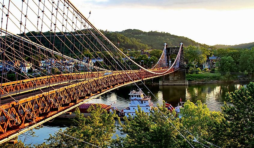 ホイーリングはウェストバージニア州の中でも大きな町の 1 つで、数マイル移動して目撃する価値のある景色が広がっています。オハイオ川のほとりに位置し、アパラチア山脈の麓に囲まれたこの町は、旅行者、特にその最高の景色を目撃した旅行者に大きな印象を残すでしょう。そのうちの 1 つはホイーリング吊り橋から見ることができます。 1849 年にオハイオ川に架けられたこの橋からは、周囲の緑豊かな森林と町のスカイラインの印象的な景色を眺めることができ、ウォーキングが可能です。