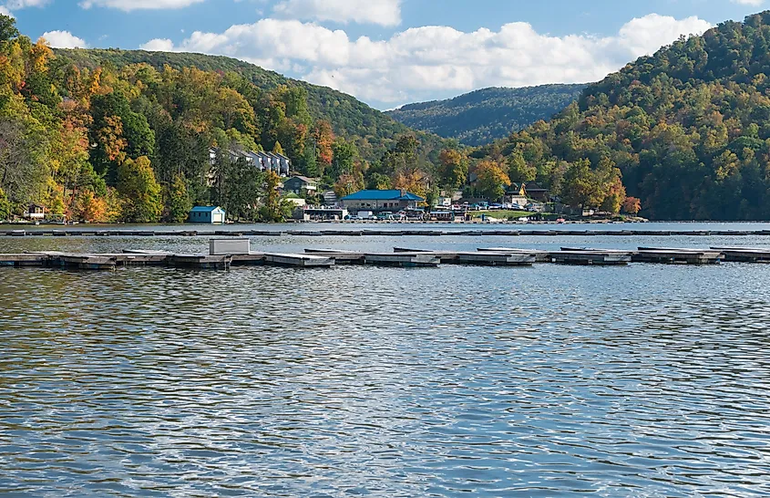 ウェストバージニア州モーガンタウン近くのチート湖のマリーナ。