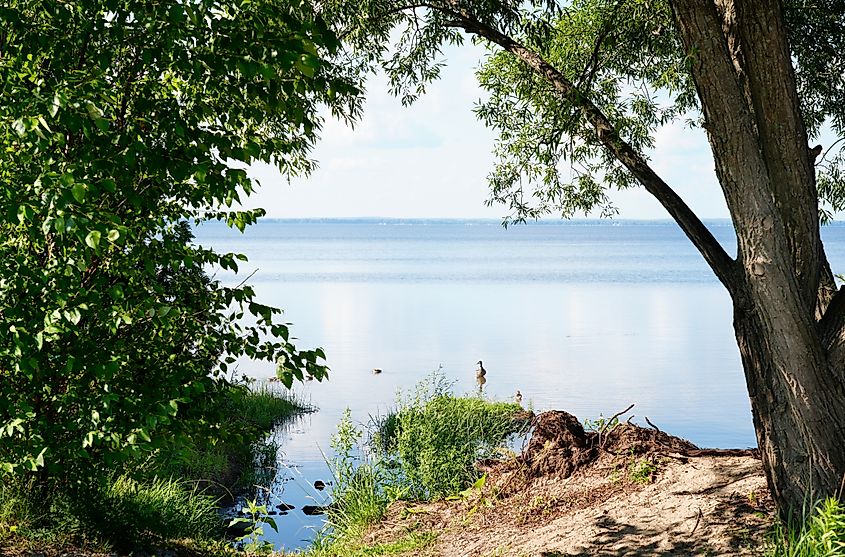 その広大な海岸線と湿地は、ミシガン州全域でよく見られ、このリストにも何度か登場する、キタミズヘビとイースタンガータースネークを含む、さまざまな種類のヘビにとって完璧な生息地を作り出しています。これらの無毒の種は、湖の海岸線、湿地、葦原でよく見られ、そこで小さな両生類や魚などの獲物を狩ります。湖の周囲の鬱蒼とした植物と湿地帯が彼らの隠れ場所となっているため、ボートや徒歩で海岸線を探索している人々は遭遇する可能性が高くなります。