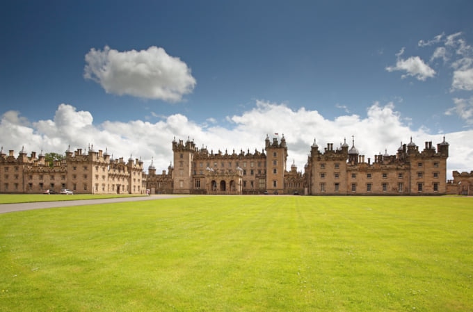 イギリスで最大の城の1つであるフロアーズキャッスルは、スコットランドとイギリスの国境の近くにあるロクスブルフ公爵のための印象的で広大な住居です。周囲の敷地には、いくつかの美しい庭園や森の散歩もあります。