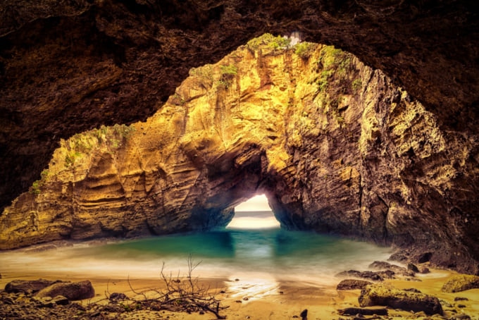 伊豆の海岸沿いには美しい洞窟がいくつかありますが、龍宮洞窟ほど絵に描いたような洞窟はありません。ここの地形は何百万年もの浸食によって形成され、上から見るとハートの形に見えるため、カップルに人気の洞窟です。洞窟内には美しい隠れたビーチがあり、近くには絵のように美しいビーチが数多くあります。