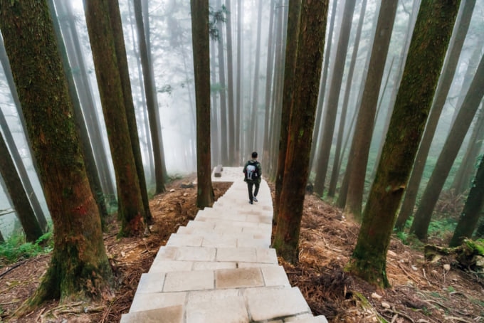 阿里山の 415 平方キロメートルの大部分は森林と山岳トレッキングで覆われているため、広大な自然をハイキングしたり探索したりするのは欠かせません。挑戦したい人には、台湾最高峰の玉山または玉山がおすすめです。熟練した登山家に人気のハイキングです。登山を試みるほとんどの人はガイドを連れて山腹で一晩を過ごします。もう少しシンプルなものを探している場合は、代わりに阿里山森林公園ループを利用してみてください。