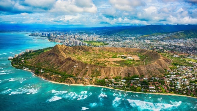 火山堆積物によって形成されたダイヤモンドヘッドは独特の形状をしており、頂上からは海とホノルルの 360 度の素晴らしいパノラマビューを楽しむことができます。