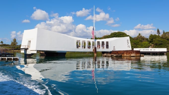 USS アリゾナ記念館は、1941 年の真珠湾攻撃で失われた 1,102 人の命を讃え、この出来事の歴史を思い出させる役割を果たしています。ホノルルで最も訪問者の多い場所の 1 つです。