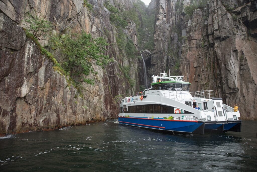 26マイルのLysefjordは、StavangerからのFjord Cruiseで楽しむことができます。これには約3時間半かかります。この落ち着いた旅行は、水からプレケストレンを見る機会を提供し、ファンの尾のあるHengjanefossenの滝のスプレーを感じることができます。