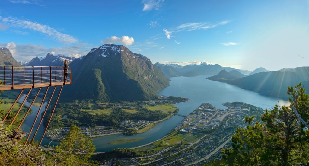Romsdalsfjordの鳥瞰図を取得するには、ネサクスラ山の頂上へのハイキングを検討して、オーンダルネスの上に2,328フィート上昇します。全体的には中程度のレベルのハイキングですが、セクションはかなり急です。トレイルが急な石の階段を構築したネパールのシェルパの手仕事に注目してください。