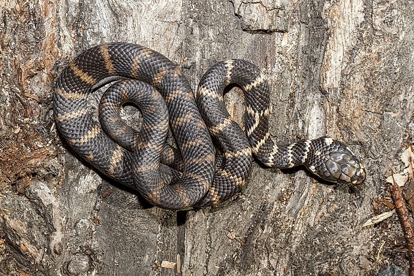 無害なキールバックヘビ(アンフィエママイリ)と間違われることがありますが、キールバックとは異なり、荒れたスケールのヘビは危険なほど毒です。挑発されると、この攻撃的なヘビはすぐに衝突し、毒素の強力な混合物で毒液を供給します。これらには、ミオトキシン(筋肉を損傷する)、凝固剤(血液凝固に影響する)、および神経毒(神経系を破壊する)が含まれます。 Tiger Snake Antivenomは毒液を中和するために使用されますが、啓発は迅速な治療なしに致命的である可能性があります。ニューサウスウェールズ州北部とクイーンズランド州南東部の間には、ほぼすべてが沿岸地域で発生している、大まかなスケールのヘビの咬傷の24の確認症例がありました。