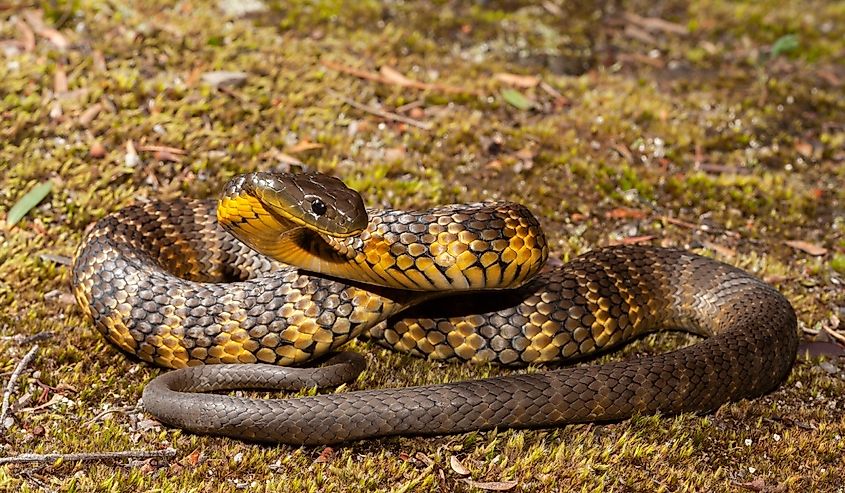 一般にキングブラウンヘビと呼ばれるムルガヘビ(Pseudechis australis)は、オーストラリアのヘビの最大量の毒を生産することで知られています。オーストラリア内およびニューサウスウェールズ州全体で発見されており、乾燥地域と半乾燥地域で繁栄しています。ムルガのヘビはこのリストのより大きな種の1つであり、平均して最大8フィートの長さで、最大の既知の標本は11フィートに達します。