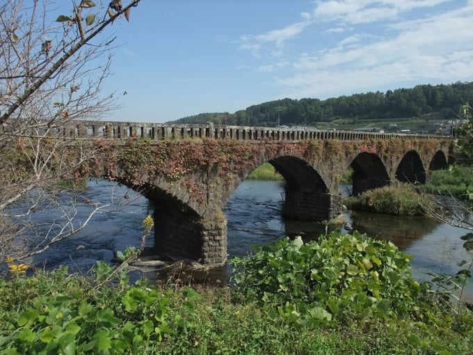オガタ橋(明治時代から)、異なるサイズのスパンを持つ2アーチ型の橋、および78メートルの長さのナガゼ橋はすべて注目に値しますが、ナガゼの後にハラジリ橋はしばしば最も美しいと考えられています。