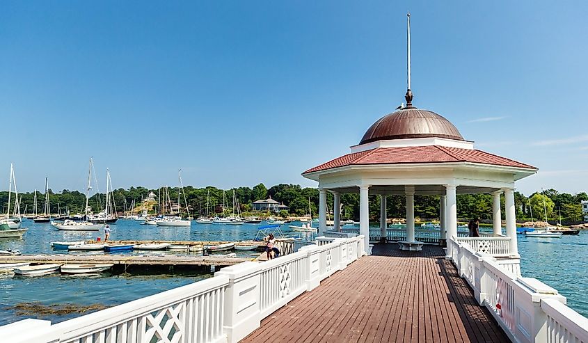 マサチューセッツ州マンチェスター・バイ・ザ・シーにあるガゼボのあるマリーナ。