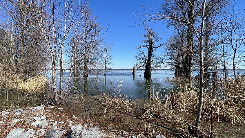 冬のテネシー州ティプトンビル近くのリールフット湖。