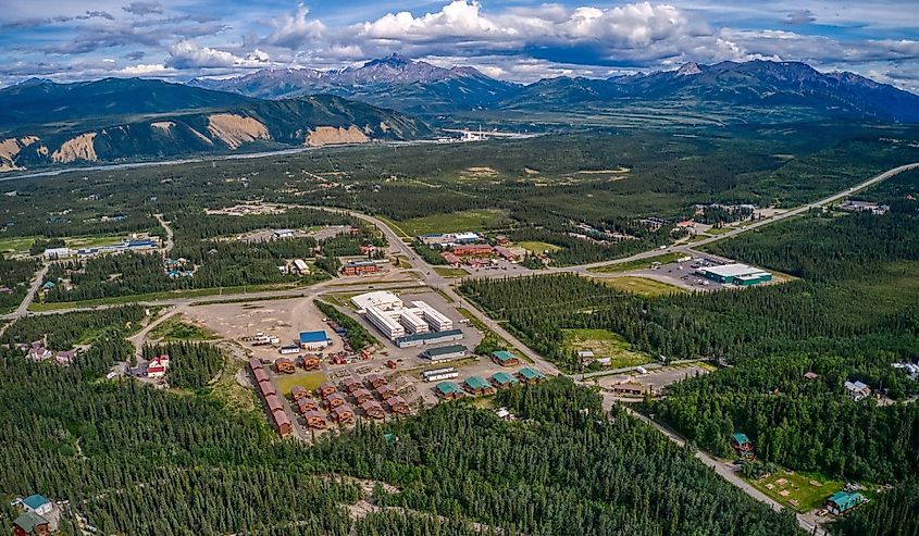 アラスカ州ヒーリーの町を一望します。