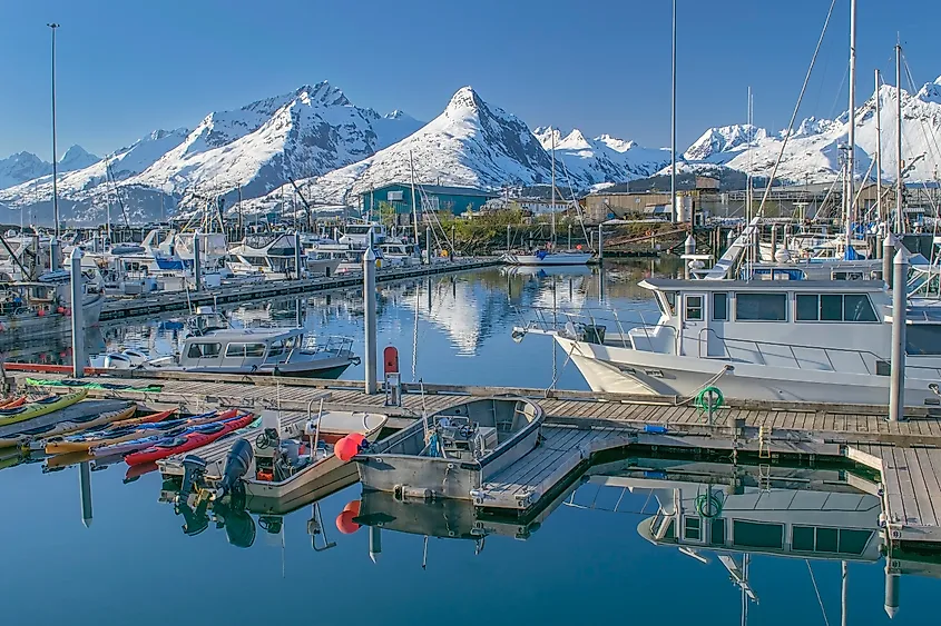 アラスカ州ヴァルディーズのマリーナ。