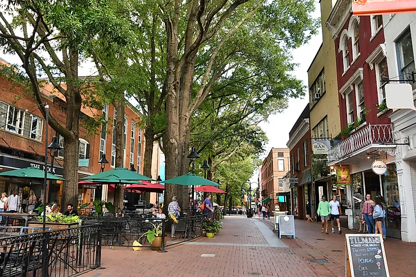 バージニア州シャーロッツビルにあるダウンタウンのモール。画像クレジット: MargJohnsonVA / Shutterstock.com。