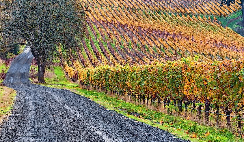 ダンディーのブドウ園と沿って走る砂利道。 shutterstock.com