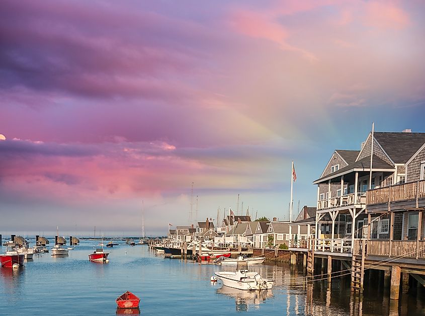 マサチューセッツ州ナンタケット島の海辺の家々。