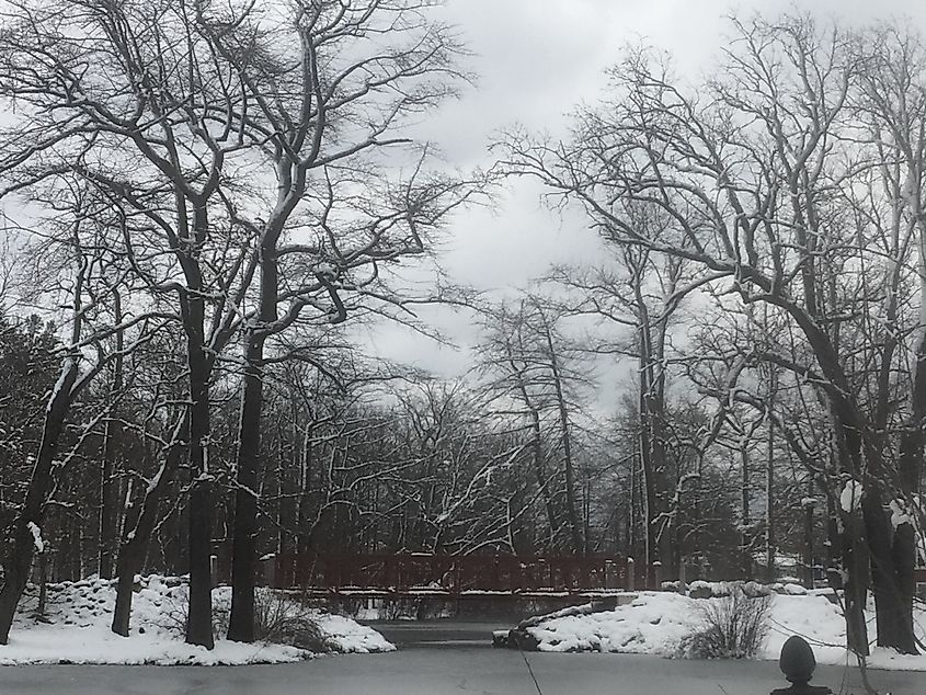 マサチューセッツ州ブラッドフォードの雪に覆われた橋と木々。画像クレジット:マリー・クリスティアン(Shutterstock経由)