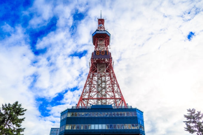 市内で最も象徴的な建物であるテレビ塔は札幌の中心部に建っており、展望台からは大都市と周囲の山々の素晴らしい景色を眺めることができます。有名な東京タワーと同じように、タワー全体がオレンジ色にライトアップされる夜は特に美しいです。