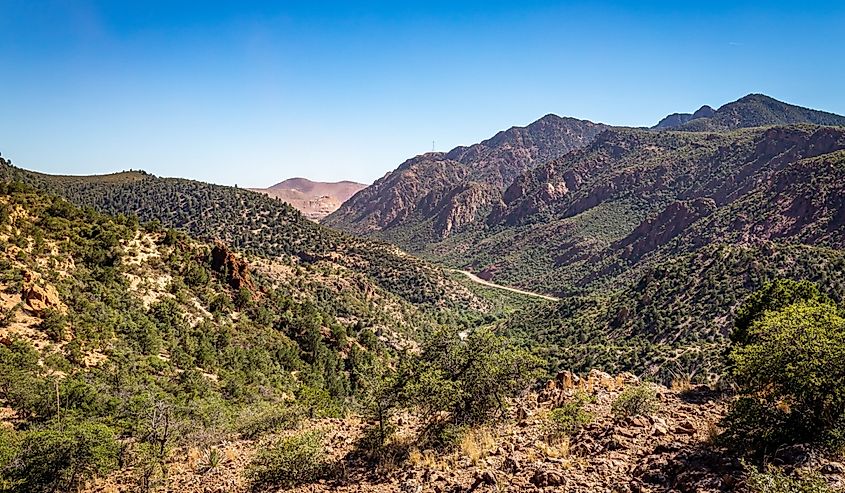 コロナド トレイル シーニック バイウェイは、歴史ある銅鉱山の町、クリフトンの南端まで曲がりくねって延びており、近くには米国最大級のモレンシー銅鉱山が景観を支配しています。鉱山の見晴らし台からは広大な操業の印象的な眺めが得られ、現代の鉱山の規模を垣間見ることができます。
