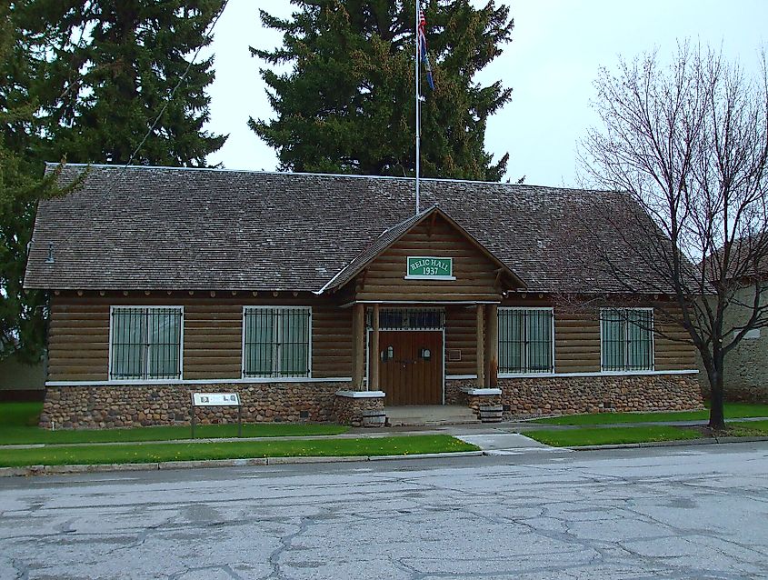 レリック・ホールは、アイダホ州フランクリンのフランクリン歴史財産に含まれる歴史的建造物です。トリシア・シンプソン著、CC BY-SA 3.0、ウィキメディア・コモンズ経由