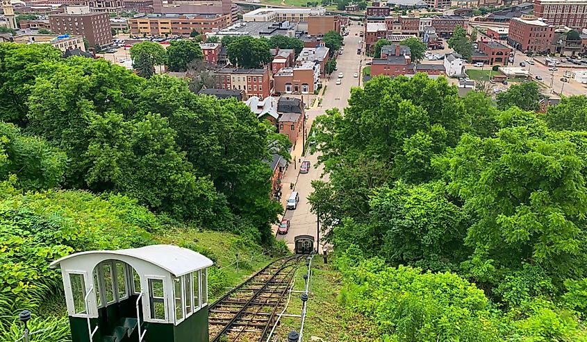 アイオワ州ダビュークの小さな鉄道を見下ろす。