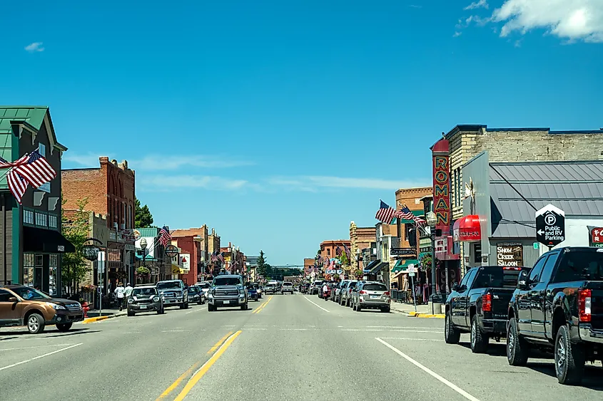モンタナ州レッドロッジの美しいダウンタウンエリア。編集クレジット: melissamn / Shutterstock.com