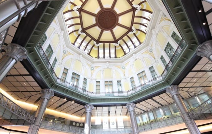 Marunouchi SouthまたはNorth Gatesのいずれかから出ると、ローマのPantheonに触発されたドーム型の天井の下に到着し、高さ約35メートルに達します。幅2.1メートルのワシ、緑樹のヘルメットのような形のキーストーン、ゾディアック動物の彫刻で飾られているので、駅のus騒を忘れるのに十分なほど美しいです。