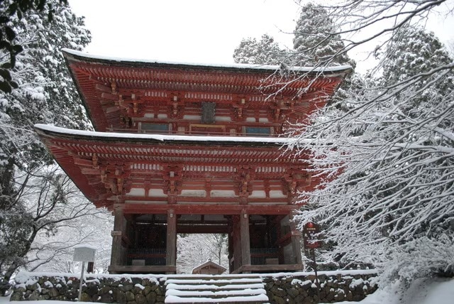 綾部市の北東部、風光明媚な上林地区に位置する標高543メートルの君尾山。この山岳地帯に位置する風光明媚なキャンプ場は、きれいでさわやかな空気と、驚くほど近くにある満天の星空で有名です。このエリアの見どころは、聖徳太子が創建したと言われる光明寺です。この寺院には静けさが漂い、保存状態の良い珍しい仁王門が特徴です。この仁王門は中世に遡る堂々とした 2 階建ての建造物で、正式に国宝に指定されています。