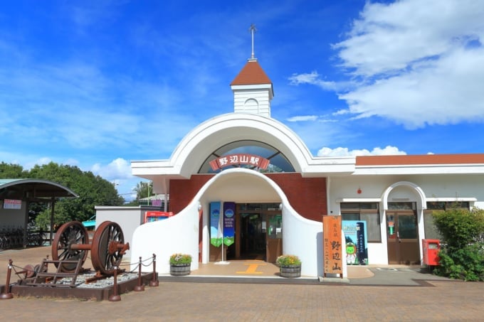 ノベヤマ地域の多くの牧場を連想させるエレガントでスタイリッシュな画像で設計された駅の建物は、印象的です。駅の建物の前に最高の標高を示すサインもあり、観光客に人気のある写真スポットになっています