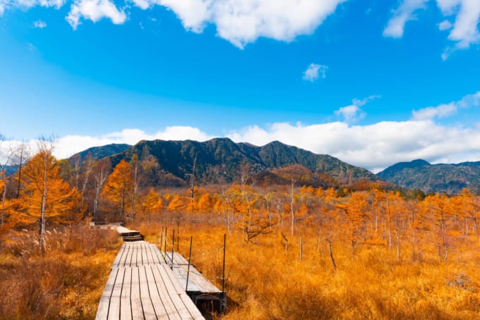 戦場ヶ原は日光国立公園内に位置する広大な湿原で、湿原と周囲の山々を一望できます。この地は、かつて中禅寺湖をめぐって男体山の龍神と赤城山のムカデ神が争った戦場だったという伝説がある。