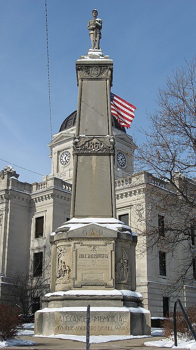 アメリカ内戦で亡くなったミシャワカ兵士の記念碑。 1884年にバッテルパークに建てられました。ウィキメダコモンズ経由の写真