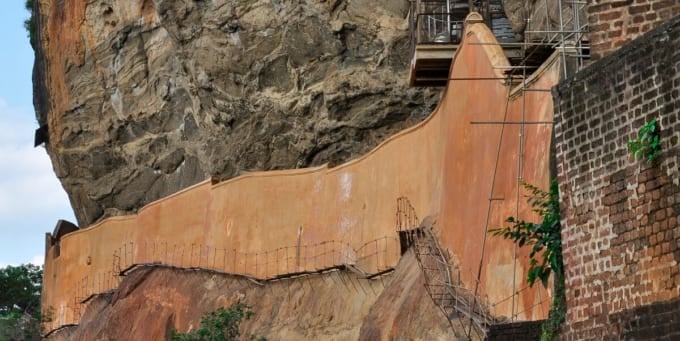 シギリヤロックの入り口から徒歩約20分、らせん鉄の階段があります。登ると、見事な壁画が現れ、18人の美しく塗装された女性を描いています。