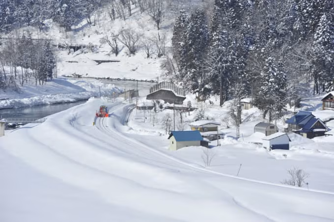 特に冬の景色は息をのむほど美しいです。この路線が通る長野北部と新潟地方は、日本有数の豪雪地帯です。しんしんと降る雪の中を列車が進むと、夕暮れ時の雰囲気はますますノスタルジックに変わっていきます。翌朝、快晴の青空の下、真っ白な雪原を列車が走り、別世界のような光景が広がります。