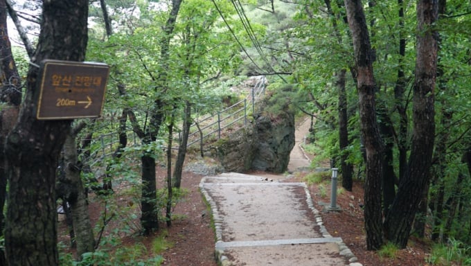 ケーブルカーが到着し、下車後は右の「アプサン展望台」の標識に従って進みました。途中階段が多いので、靴はスニーカーが最適です。