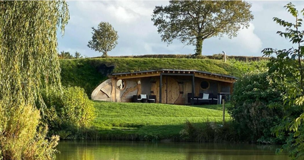 キノピオ・ホールの地球に守られたロッジ(またはホビットの家!)に滞在