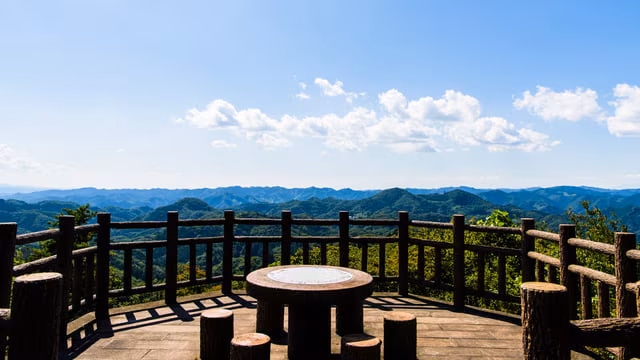 九場展望台は、雄大な山々の中に富士山を望む絶景ビューポイントとして知られています。その景色は観光客の間で人気があるのに十分な印象を与えます。常陸大宮市の広大な風景を眺めながら、のんびりピクニックを楽しむのもおすすめです。自然に囲まれながら、ゆっくりとお寛ぎください。