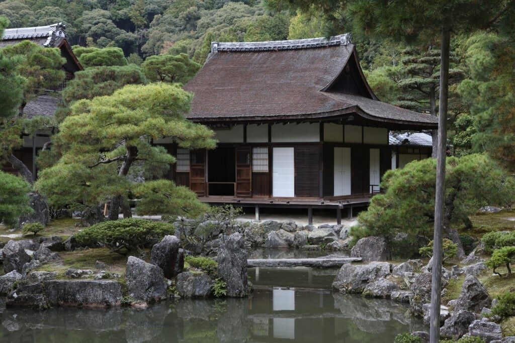 シルバーパビリオンの本拠地であるジンカクジの禅植物園を訪れます。そこでは、乾燥した砂の庭、池、緑の苔、その他の植物や木がきちんと密集している他の植物や木の周りに流れる小道に出会います。