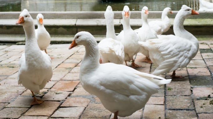 4. 中庭に飼われている13羽のガチョウ